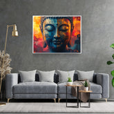 This meditation painting captures the essence of inner peace through the serene facial expression and closed eyes, representing deep contemplation and spiritual awareness. The contrasting warm and cool colors symbolize the balance between energy and tranquility, making it perfect for meditation spaces and zen environments.