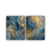 Blue Gold Fluid Art Set - Abstract Marble Diptych Canvas