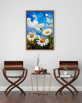 Add a touch of freshness with daisy bloom floral wall art. Shop lively canvas paintings featuring bright white daisies and blue skies—ideal for uplifting home, office, or cafe interiors at WallArtVibes.com. Bring vibrant nature-inspired style and an airy vibe to your space with high-quality floral artwork.