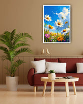 Daisy Field Floral Wall Art – Vibrant Canvas Painting for Home, Office & Cafe Décor