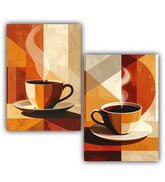 Transform your cafe, restaurant, or kitchen with this stunning geometric coffee cup canvas art set featuring warm orange and brown abstract designs. These modern paintings perfectly capture the cozy atmosphere of coffee culture with contemporary styling ideal for commercial and home dining spaces.