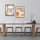 Celebrate the perfect morning ritual with this captivating dual artwork set that combines the joy of music and the revitalizing power of coffee. The first piece invites you to energize your spirit with “Espresso Yourself With Good Tunes,” symbolized by the harmonious union of a guitar and a coffee cup, as music flows from the strings like a comforting melody. The second evokes the freshness of a new day with an uplifting scene of a person embracing sunlight and blooming sunflowers, accompanied by the hopeful phrase “Let Freshness Fill Your Cup.” Ideal for cafes, kitchens, or creative workspaces, these prints evoke a sense of inspiration, renewal, and joyful beginnings in a stylish vintage-modern fusion.