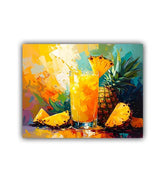 This colorful painting captures a refreshing glass of pineapple juice surrounded by fresh pineapple slices in a dynamic splash of vibrant hues, perfect for adding energy and tropical vibes to any cafe or restaurant space. Ideal for juice bars, dining areas, or kitchens seeking creative and lively decor that inspires freshness and natural flavor.
