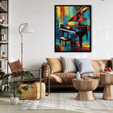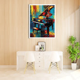 By abstracting the piano this way, the artist invites onlookers into an imaginative soundscape where color and form merge to express artistic creativity.