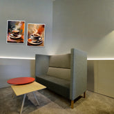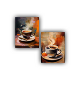 These cozy, expressive artworks celebrate the ritual of coffee, each featuring a steaming cup paired with gentle brushwork and warm, earthy tones. The rising steam and soft light evoke comfort and warmth, making these prints a perfect match for reading nooks, breakfast corners, or a stylish café-inspired lounge. The inviting arrangement with an orange accent chair and calming greenery adds to the ambiance, creating a true retreat for slow, mindful moments.