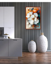 Transform your space with this stunning white magnolia canvas wall art featuring elegant blooms against a vibrant orange and teal background. This modern floral painting combines contemporary artistry with timeless floral beauty, perfect for kitchen, dining room, or living room decor.