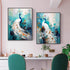 This enchanting two-piece canvas art set features elegant white peacocks amidst a serene backdrop of turquoise, teal, and soft white brushstrokes. The subtle hints of orange add a delicate contrast, creating a calming yet sophisticated aesthetic perfect for any contemporary space.